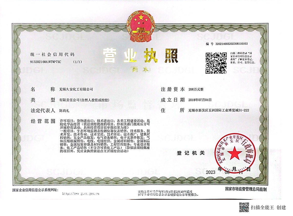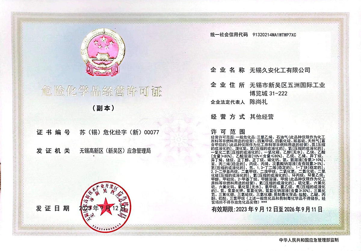 無錫久安化工有限公司成立于2018年,位于無錫錫山區(qū)是一家專業(yè)的工業(yè)氣體供應商,無錫久安化工生產(chǎn)與銷售各種氣體、工業(yè)氣體、高純度氣體、特種氣體體、電子氣體、稀有氣體等多種產(chǎn)品:氧氣、氮氣、氬氣、二氧化碳、混合氣等工業(yè)氣體;液氧、液氮、液氬、液二氧化碳、等液態(tài)氣體;乙炔、丙烷、氫氣、高純氣、特氣等特殊氣體等。